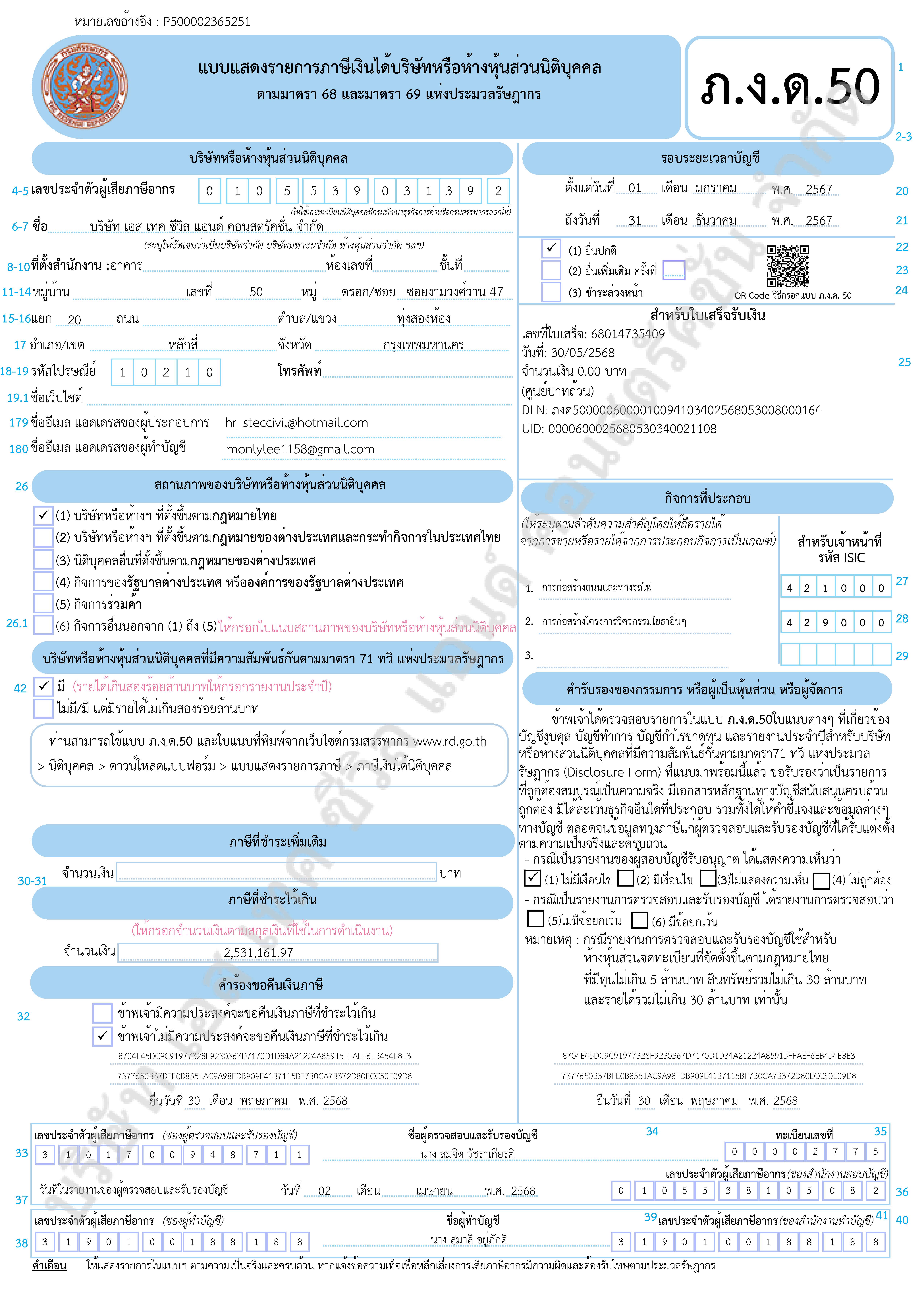 | 2567 | ภาษีเงินได้ | 2 เม.ย. 68 | ✓ | ✓ | ||